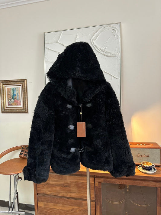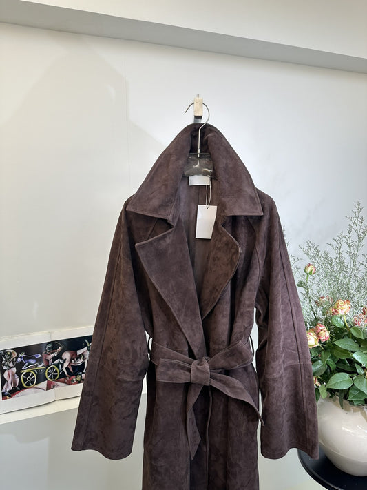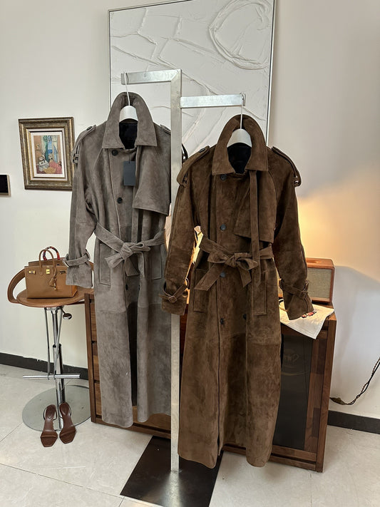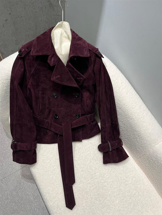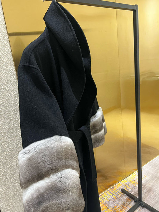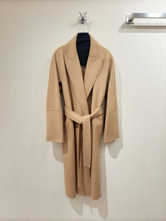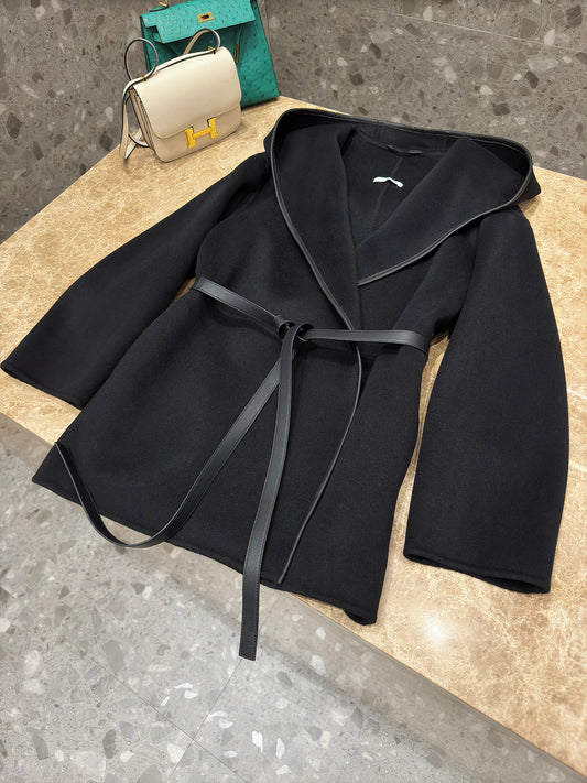 Double-faced water ripple cashmere bathrobe-style wool lace-up coat