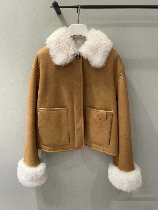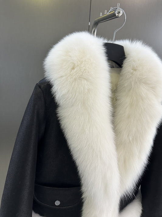 Double-faced water ripple cashmere bathrobe-style wool lace-up coat