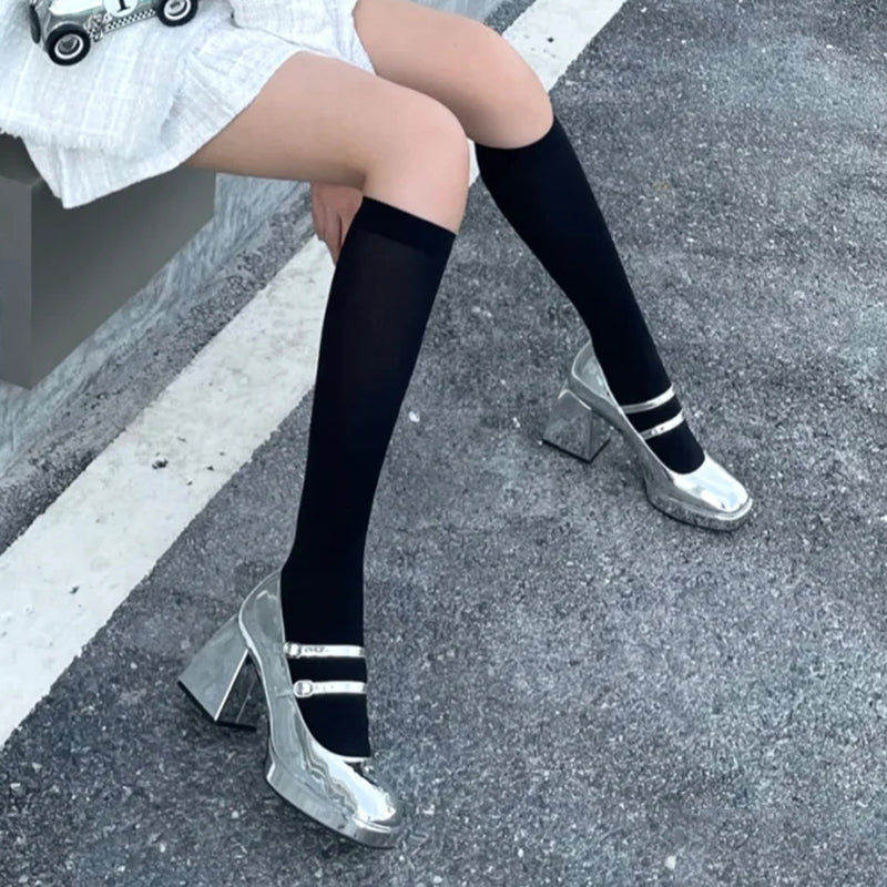 Vintage Mary Jane Shoes Women French Square Toe High Heels